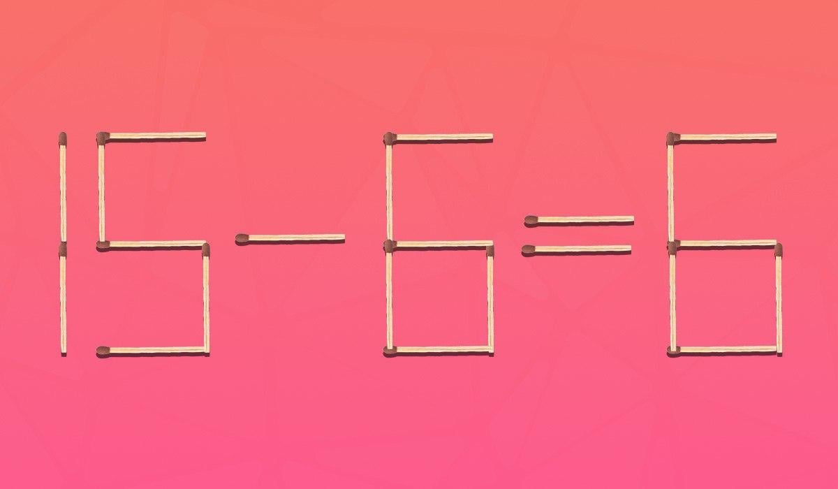 Bem, vamos descobrir juntos. Para obter uma igdade matematicamente correta, bastava mover a parte inferior esquerda do dígito 6 no meio da igdade para a parte superior direita do dígito. Desta forma, obtém-se o algarismo 9 em vez de 6. Isto dá-nos a igdade correta: 15-9=6.