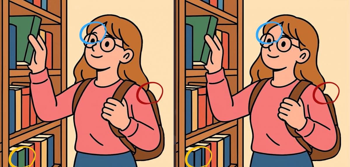 Então, estás pronto para o próximo desafio? Observe com atenção d imagens de uma rapariga a escolher livros numa biblioteca. Podem parecer igs à primeira vista, mas existem 3 pequenas diferenças. Achas que consegues encontrá-las todas em 19 segundos? Experimenta e testa a tacuidade vis!