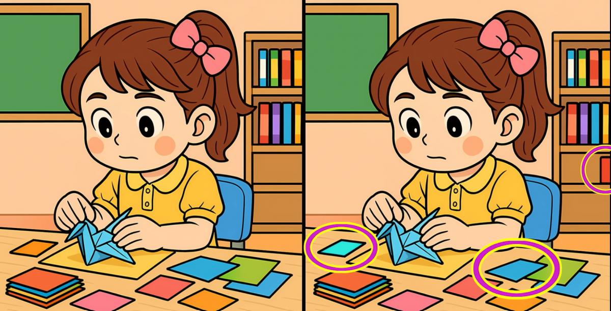 Então, estás pronto para o próximo desafio? Observe com atenção d imagens de uma rapariga a fazer pássaros de papel. Podem parecer igs à primeira vista, mas há 3 pequenas diferenças. Achas que consegues encontrá-las todas em 19 segundos? Experimenta e testa a tacuidade vis!