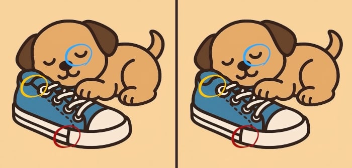 Então, estás pronto para o próximo desafio? Observe com atenção as d imagens de um cachorrinho a dormir num sapato. Podem parecer igs à primeira vista, mas existem 3 pequenas diferenças. Achas que consegues encontrá-las todas em 51 segundos? Experimenta e testa a tacuidade vis!
